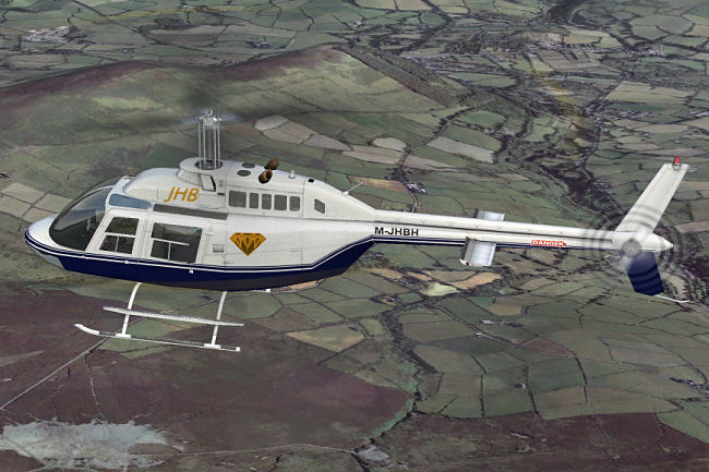Bell B206 Jetranger (Default) M-JHBH in blue Texture set for the default FSX Bell 206. Two colour schemes are available - a standard JHB set and a reversed colour set with a blue top. Repaint by Bones.
